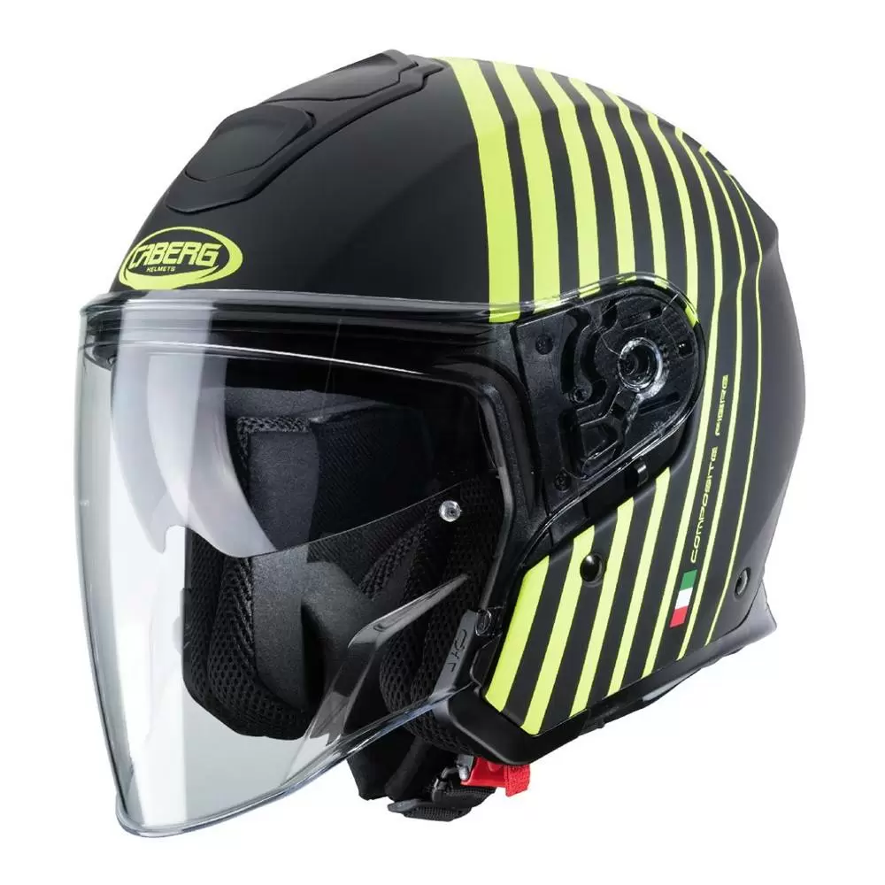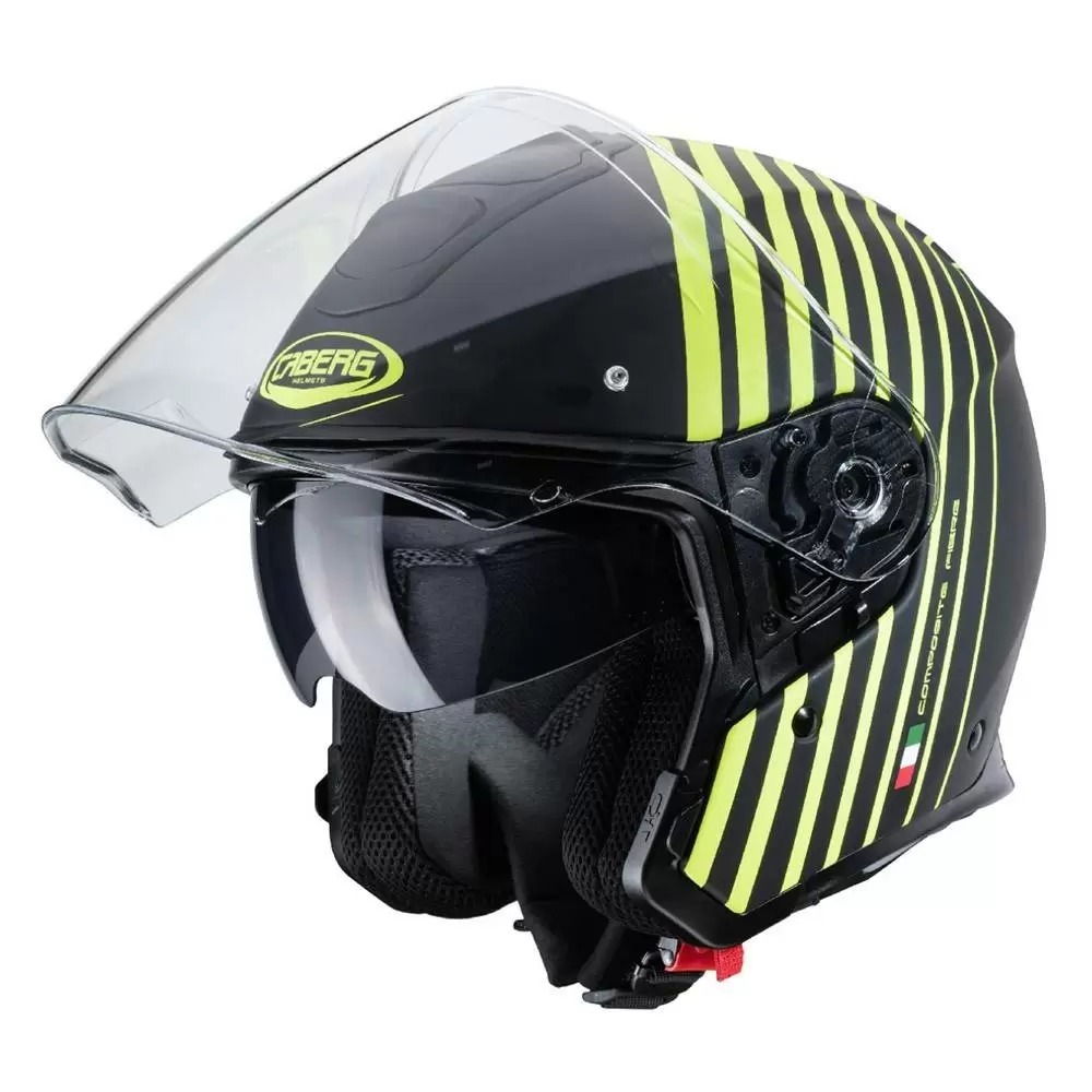 Caberg Flyon Bakari Matt Black Yellow Open Face Helmet. Flyon is the Caberg Open Face Helmet conceived for the daily urban and extra-urban routes.