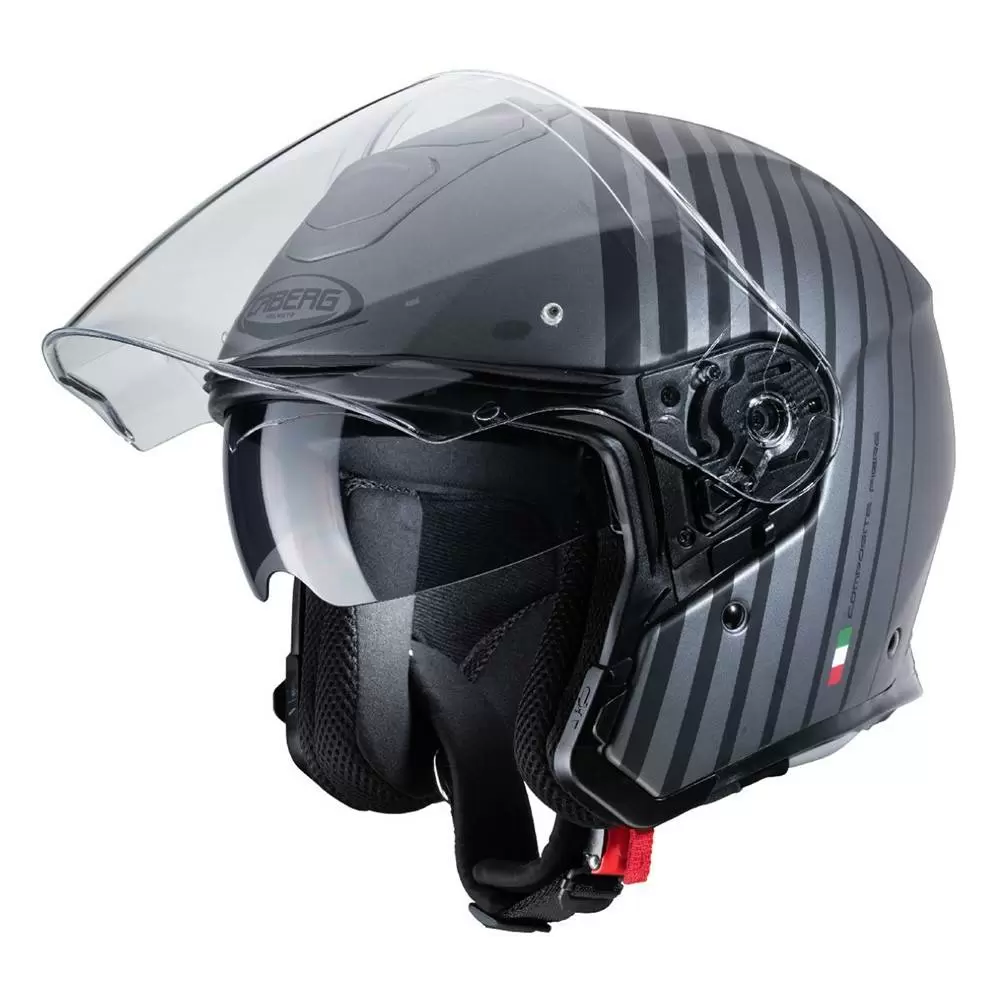 Caberg Flyon Bakari Matt Gunmetal Black Open Face Helmet. Flyon is the Caberg Open Face Helmet conceived for the daily urban and extra-urban routes.