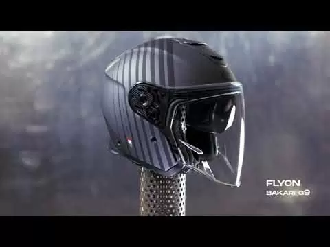 FLYON is available in the solid colors Matt Black, White, and Matt Blue Yama, in the graphic design BAKARI in three different color combinations that are Matt Black/Yellow Fluo, Matt Gun Metal/Black, and White/Silver/BWM colors; the FLYON CARBON version with a glossy carbon fiber shell and in the new graphic design RIO in two different color combinations that are Matt Black/Red/Anthracite/Silver and Matt Blue Yama/White/Yellow Fluo/Silver.