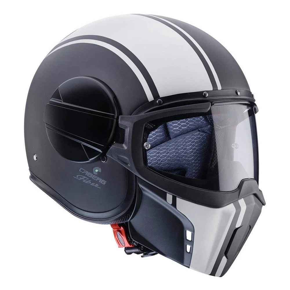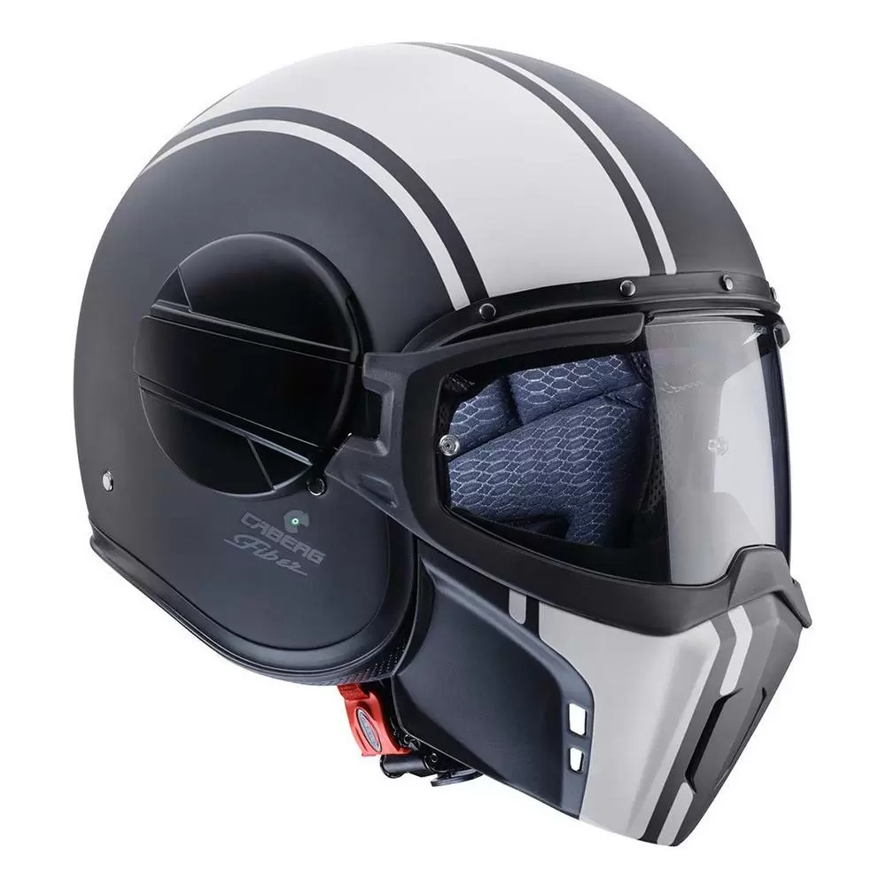 Caberg Ghost Legend Matt Black White Open Face Helmet. Ghost is the helmet conceived by Caberg for those riders who don’t want to go unnoticed. The aggressive look and shapes are combined with great functionality that is unique on the market.